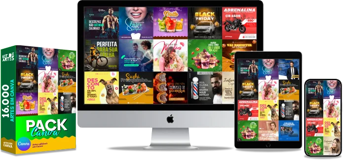 O Pack Canva é o melhor e mais completo pack de mídias sociais, do Brasil e Mundo, com ele você será capaz de produzir artes incríveis e profissionais, em poucos minutos e usando até mesmo o seu celular. São Milhares de artes prontas, categorizadas e de fácil edição onde você não precisará criar nada do ZERO, alguns cliques são mais que suficientes para impactar mais vidas, através das redes sociais.